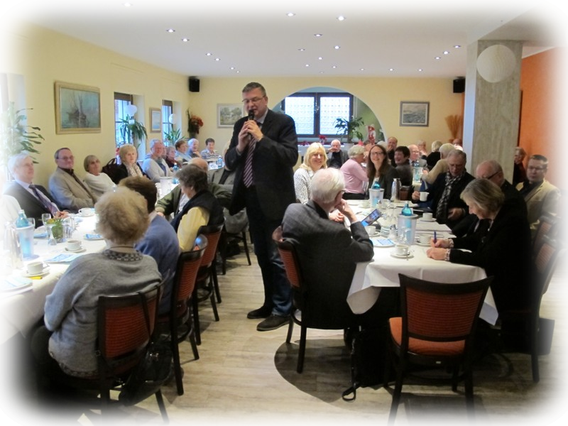 Die Senioren-Union der CDU Niederkassel hatte ihre Mitglieder zur jährlichen Versammlung und zum Neujahrsempfang eingeladen. Fast achtzig Personen waren ins Gasthaus „Zur Alten Post“ nach Rheidt gekommen. Der Vorsitzende, Herr Raimund Reiner, begrüßte die Senioren und die Ehrengäste, Herrn Bürgermeister Stephan Vehreschild, den Fraktionsvorsitzenden der CDU, Herrn Markus Kitz, die Landtagskandidatin unseres Wahlkreises, Frau Katharina Gebauer, Frau Hildegard Seemayer vom CDU Stadtverband Niederkassel und Herrn Wilhelm Gunkel, Vorsitzender der Kreis-Senioren-Union. Nach der Totenehrung richteten die Ehrengäste ein Grußwort an die Senioren. Hierbei wurde deutlich, dass die Senioren-Union in der Öffentlichkeit und bei den Politikern sehr geschätzt wird. Der Vorsitzende berichtete im Jahres-Rückblick über die Aktivitäten der Senioren-Union. Besonders erwähnenswert sind die monatlichen Ausflüge, die von den Mitgliedern sehr geschätzt werden. So ging es dieses Jahr nach Kloster Eberbach, zur Stadtbesichtigung nach Trier, zur Deutschen Flugsicherung in Langen, um nur einige Ziele zu nennen. Highlight war die mehrtägige Studienreise mit 37 Teilnehmern nach Görlitz und Breslau. Mit Stolz berichtete der Vorsitzende, dass die Senioren-Union Niederkassel mit 191 Mitgliedern die größte ihrer Art im Rhein-Sieg Kreis ist. Sein Wunsch für 2017: mit jüngeren Mitgliedern das derzeitige Durchschnittalters von 76,5 Jahren zu senken. Der Schatzmeister berichtete über die Finanzen und konnte mitteilen, dass die Senioren-Union mit einem guten Finanzpolster in das neue Jahr starten wird. Anschließend referierte der Bürgermeister unter anderem über den städtischen Haushalt. 2016 schloss dieser mit einem Fehlbetrag ab, der nur durch Rücklagen ausgeglichen werden konnte. Der Fehlbetrag ist, trotz guter Steuereinnahmen, wegen des hohen Sozial-Etats entstanden. Das Land und der Bund haben der Stadt zusätzliche Aufgaben übertragen, die nur teilweise finanziell ausgeglichen wurden. Marcus Kitz berichtete über den weiteren Ausbau der Kindertagesstätten, die Verlängerung der L 269 von Rheidt nach Mondorf, den Bau der Turnhalle in Mondorf und die geplante Rheinquerung bei Lülsdorf/Wesseling. Die Stadt hat ihren Plan für die Straßen-Anbindungen dem Verkehrsministerium bereits übermittelt. Dieser berücksichtigt die Interessen der Anwohner bezüglich Lärm und Luftverschmutzung.