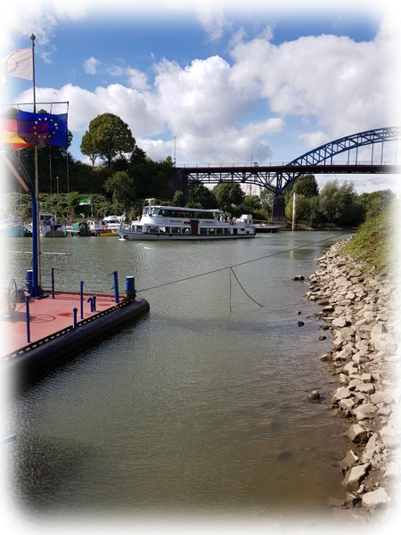 Nach der mittäglichen Stärkung im Restaurant des Besucherzentrums im Hauptschalthaus brachte der Bus die Gruppe zu einer Hafen-Rundfahrt zum Duisburger Hafen. Auf dem Fahrgastschiff „Rheinfels“ wurde mit Kaffee und Kuchen bei der zweistündigen Rundfahrt unter den kundigen und launigen Erläuterungen des Kapitäns Moser der weltgrößte Binnenhafen mit seinen 21 Hafenbecken in Duisburg „erfahren“.