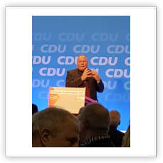 Pünktlich um 17,00 Uhr hielt der Landesvater, Ministerpräsident Armin Laschet, unter den Klängen des Marsches „Preußens Gloria“ Einzug in die voll besetzte Halle. Bei solch einem Anlass war natürlich die Politprominenz des Landes, aber auch mit dem Europaabgeordneten Elmar Brok und der Bundestagsabgeordneten und Vorsitzenden Der CDU Rhein-Sieg, Elisabeth Winkelmeier-Becker, vertreten. Nach Begrüßung durch Kreisvorsitzenden Jochen Richter (MdL) heizte der Generalsekretär der Landes-CDU , Josef Hovenjürgen, die Zuhörer bis hin zum Stimmversagen mit einer engagiert kämpferischen Rede mit Seitenhieben auf das Berliner Theater auf den Auftritt des Ministerpräsidenten ein.